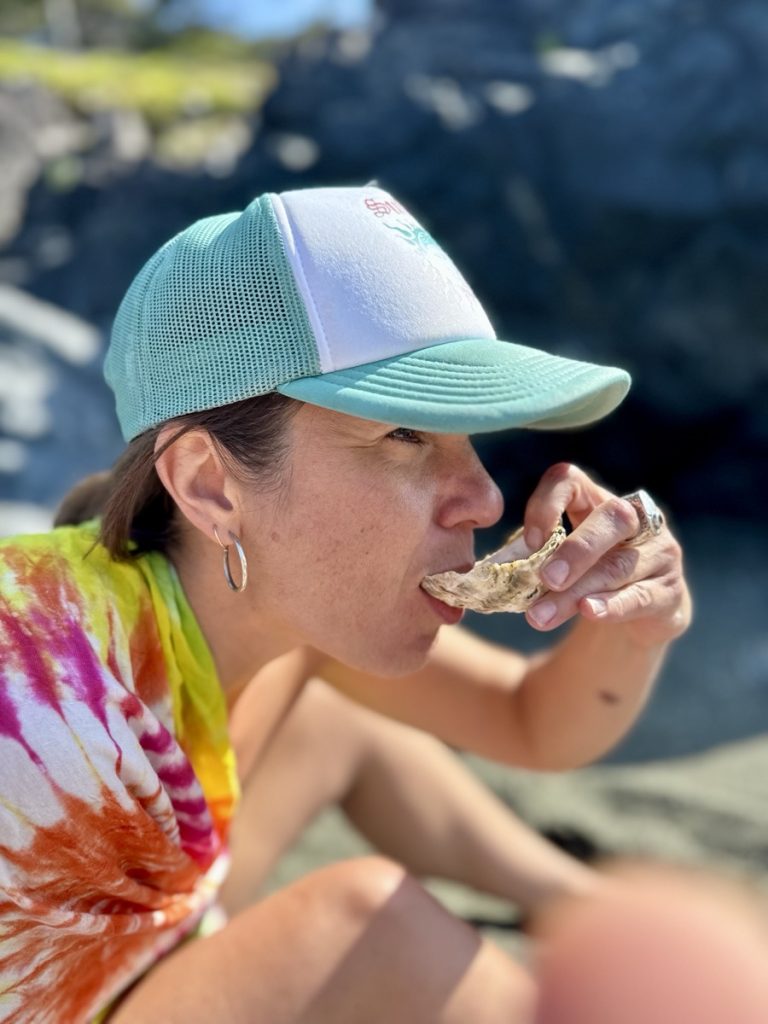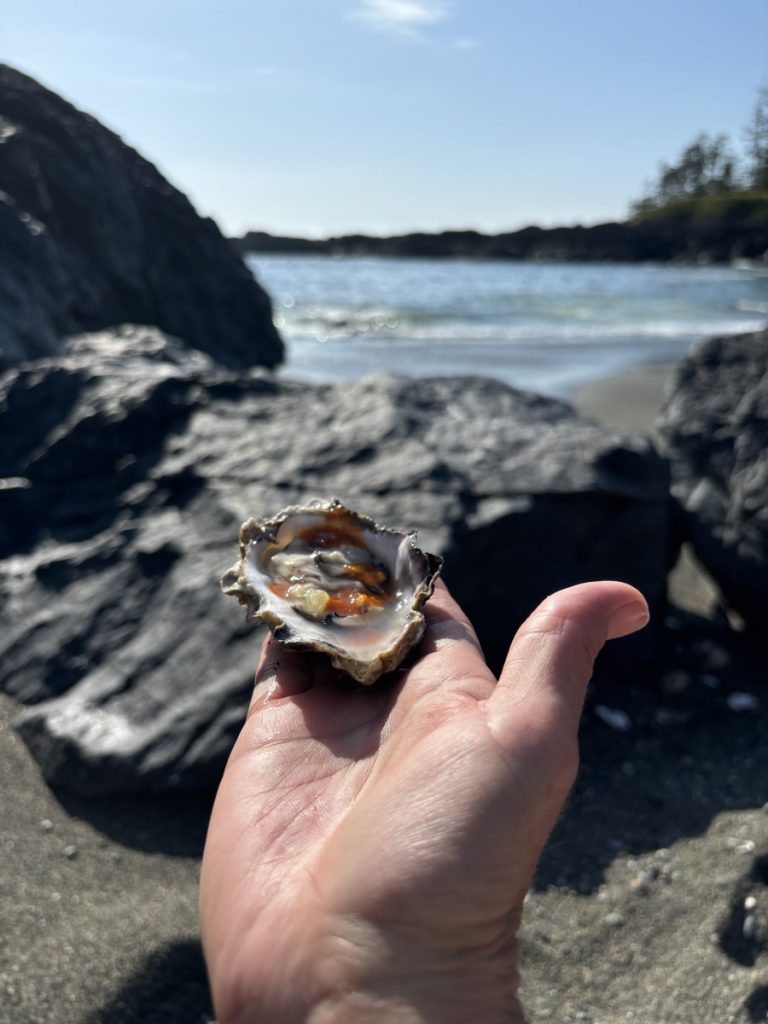 Back at the dock, we grabbed fresh oysters from a local seafood shop Fishfull and carried them to the Wild Pacific Trail, where we found a quiet spot near the rocky beach. Just as we spread out our towels, something magical happened: a whale surfaced in the bay, circling slowly as if giving us a private show.